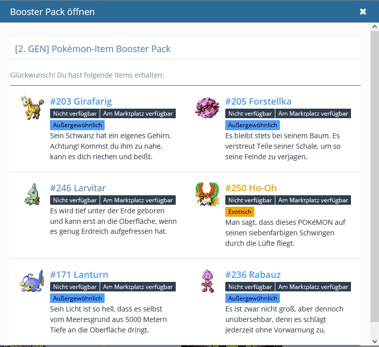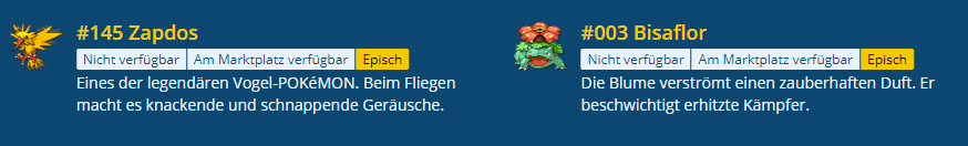 Ein Celebi, ein Zapdos und ein Arktos. Werden direkt verkauft. ![]()
