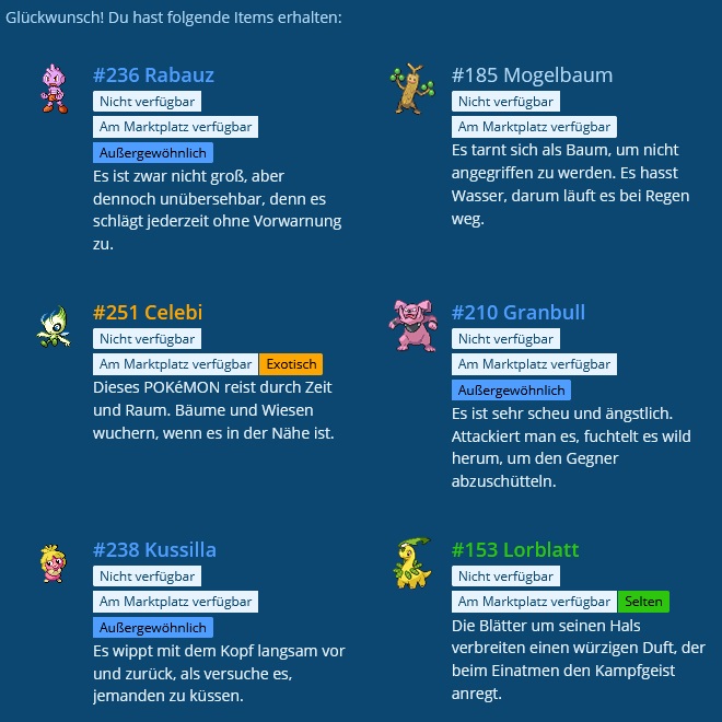 Ich habe einen Celebi und Stahlos bekommen.