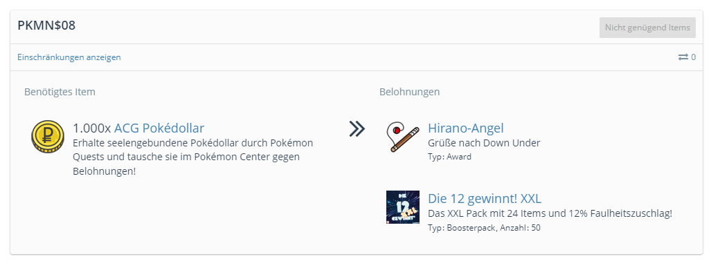 Da jedes Pokémon-Item nur 1x vorkommt, haben die Bestände der Mitglieder dann 9 Monate Zeit, sich zu "regenerieren".