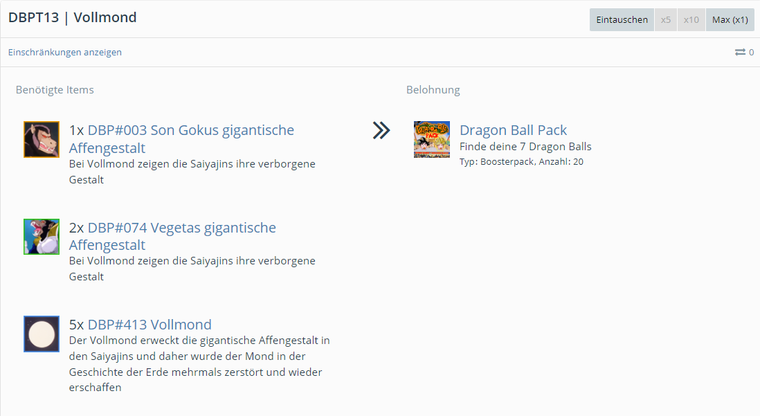 Bitte benutzt für den Austausch von Dragon Ball Items aus dem Booster Pack folgendes Thema: