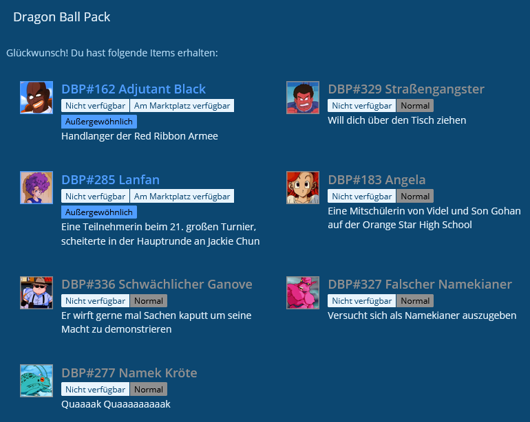 Damit sich keine außerirdischen Affen und ähnliche Helden mehr im Pokémonthema verirren, hier nun endlich der Thread für euren Loot aus den DBP!
