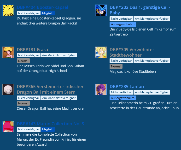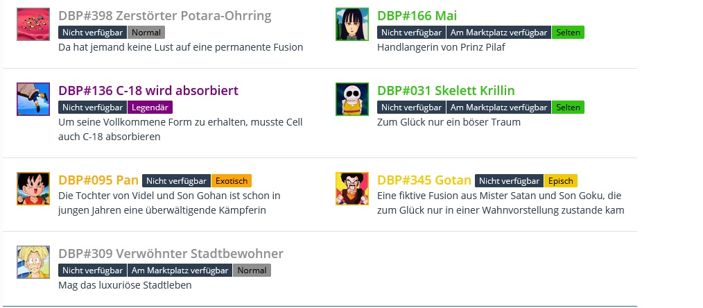 Aber ich hab die grauen schon alle voll. Melli braucht Episch, Exotisch, Magisch und Legendär. Alles andere (außer Picoolos und Shins) ist nur unnötiger Balast.