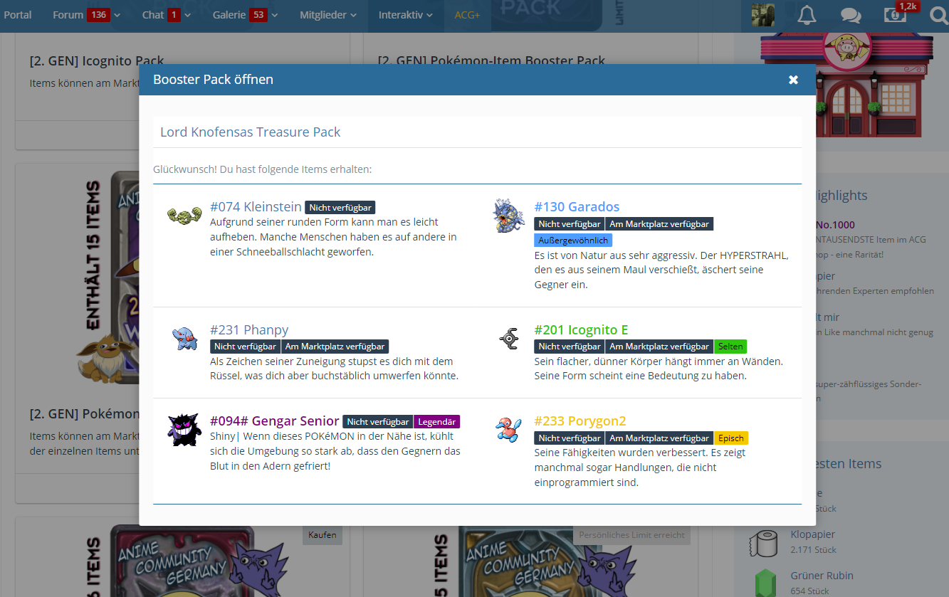 Nach 50 Boostern 4x Pepe und 2x Zitterfisch