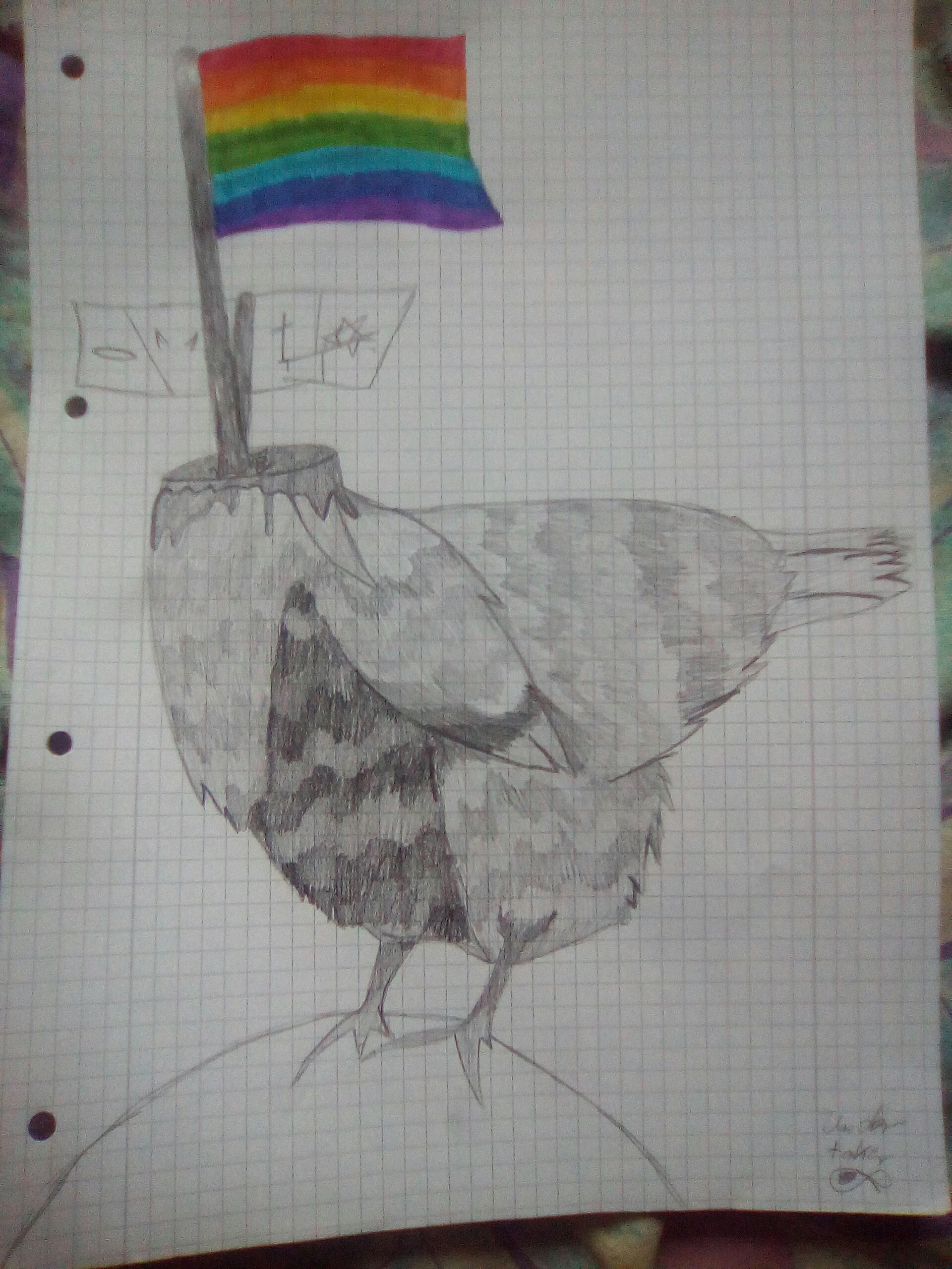 Ein Huhn,aus einem entstandenem schlechten Witz aus ner Musik-Stunde und mein Kleiner Zwilling,bald kommt mehr von mir ^^ <33
