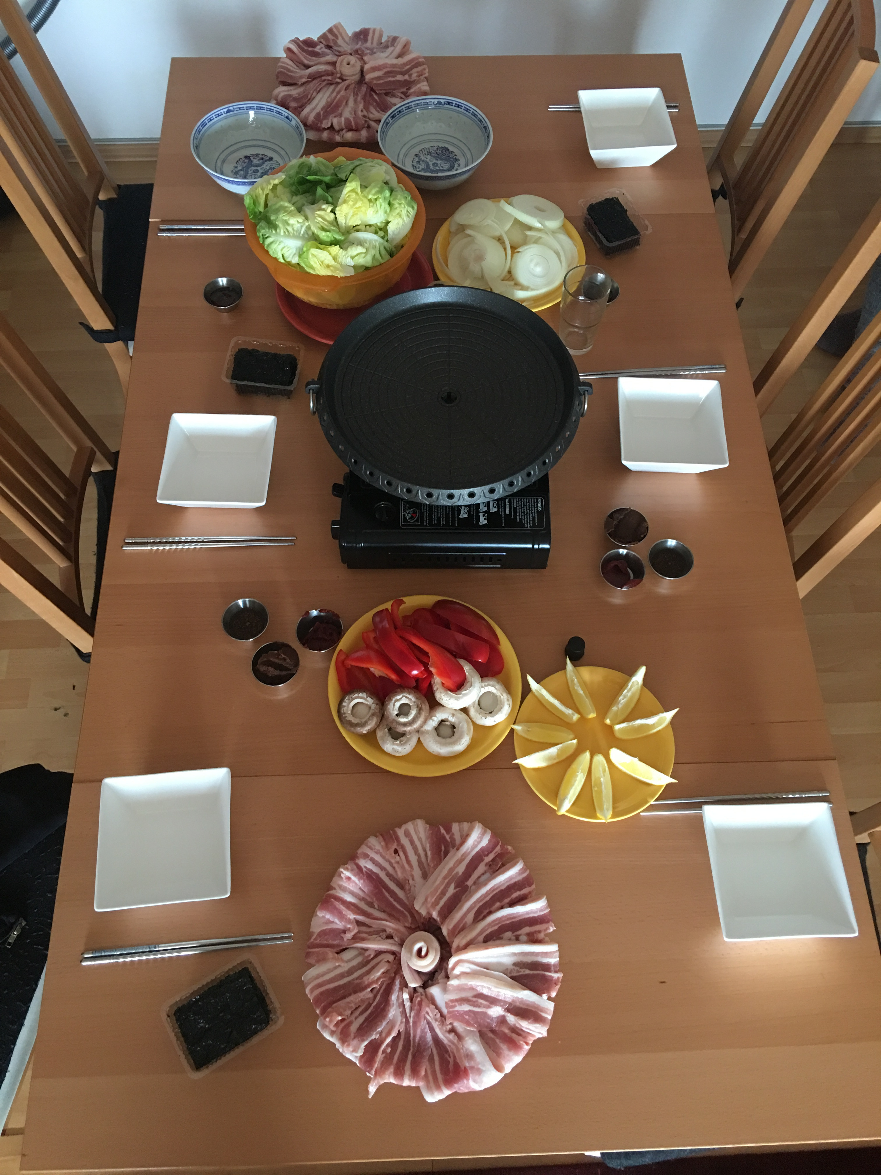 Raclette auf koreanische Art xD Die Chilipaste war toll ♥ Und Neo's Kreation der Speckrosen!!! ;D