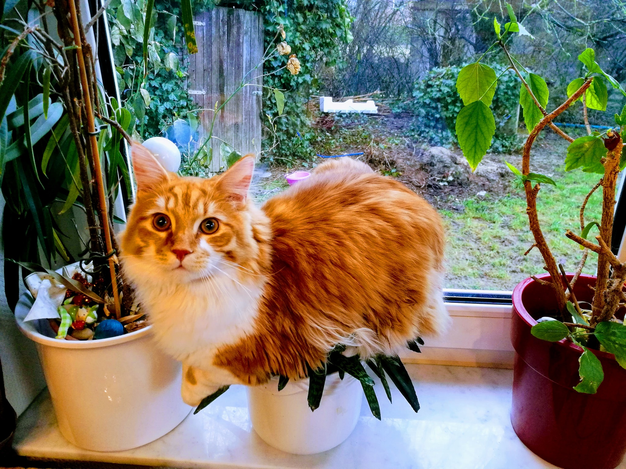 Der Kater hat nen grünen Daumen.
