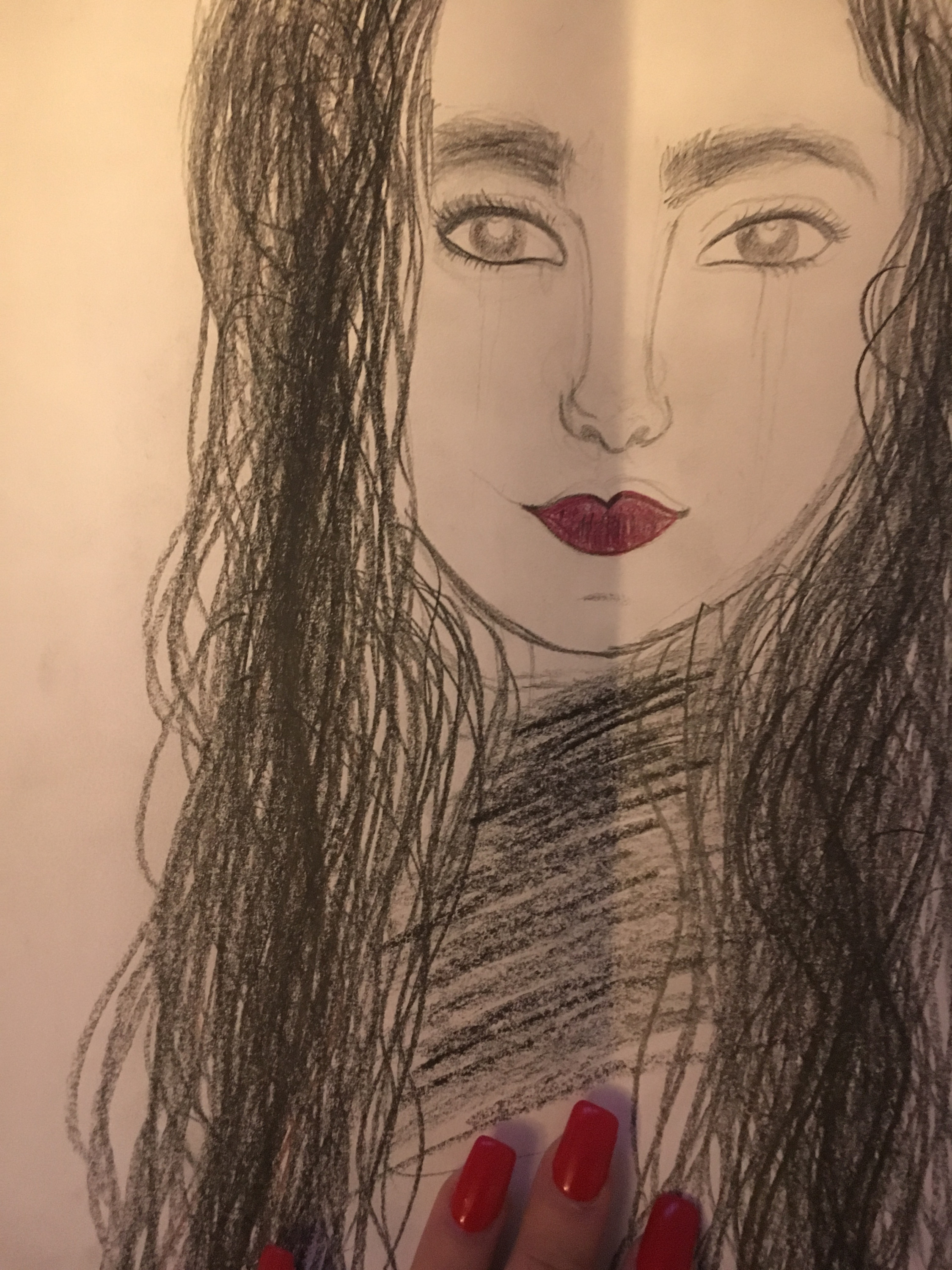 Erst dachte ich, du hättest Samara Morgan gemalt, aber dann fiel mir auf, dass es nur ein wunderschönes Selbstportrait von dir ist.