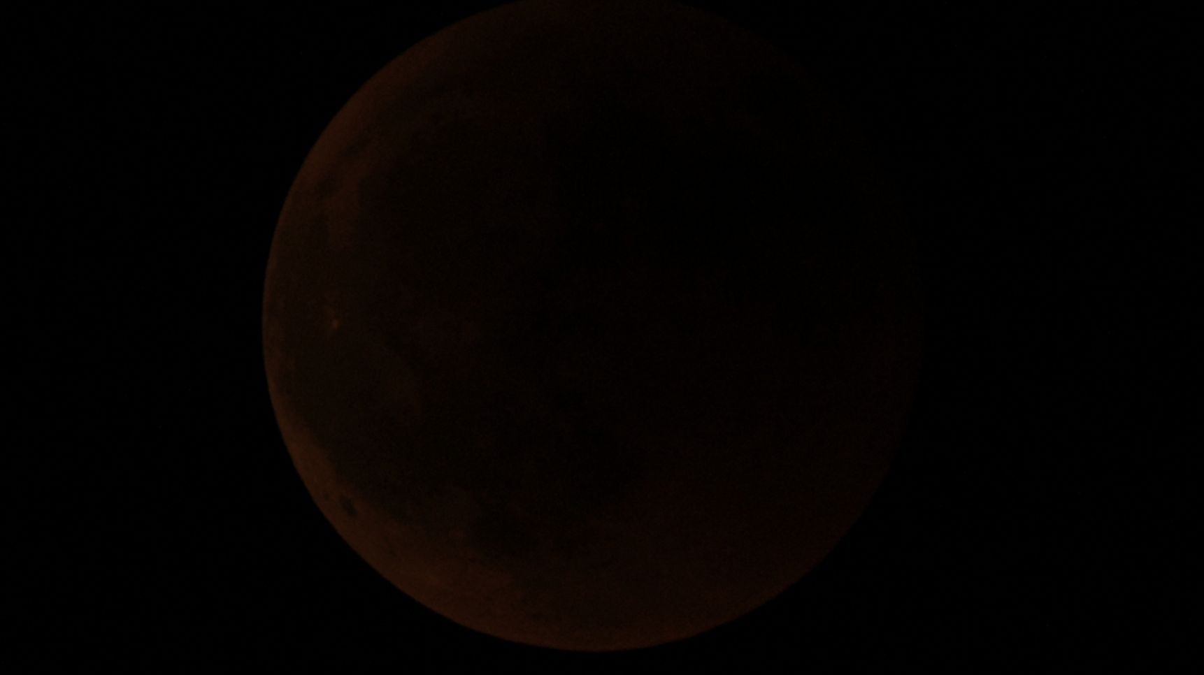 Der erste Schnappschuss von der Mondfinsternis am 27.07.2018. Hab meiner Kamera ans Teleskop angeschlossen. Zu diesem Zeitpunkt konnte ich den Mond mit bloßem Auge so gerade eben am Himmel erkennen. Auf dem Bildschirm meiner Kamera war noch viel weniger zu sehen, im Prinzip hab ich einfach grob ausgerichtet und einige mal den Auslöser betätigt. Generell hatte ich an dem Abend starke Probleme mit den Einstellungen der Kamera und der Schärfe. Der Mond war lange Zeit kaum zu sehen. Dadurch, durch Luftunruhe und Wind war es praktisch kaum möglich die Schärfe gut einzustellen. Trotzdem sind ein paar brauchbare Bilder dabei gewesen.