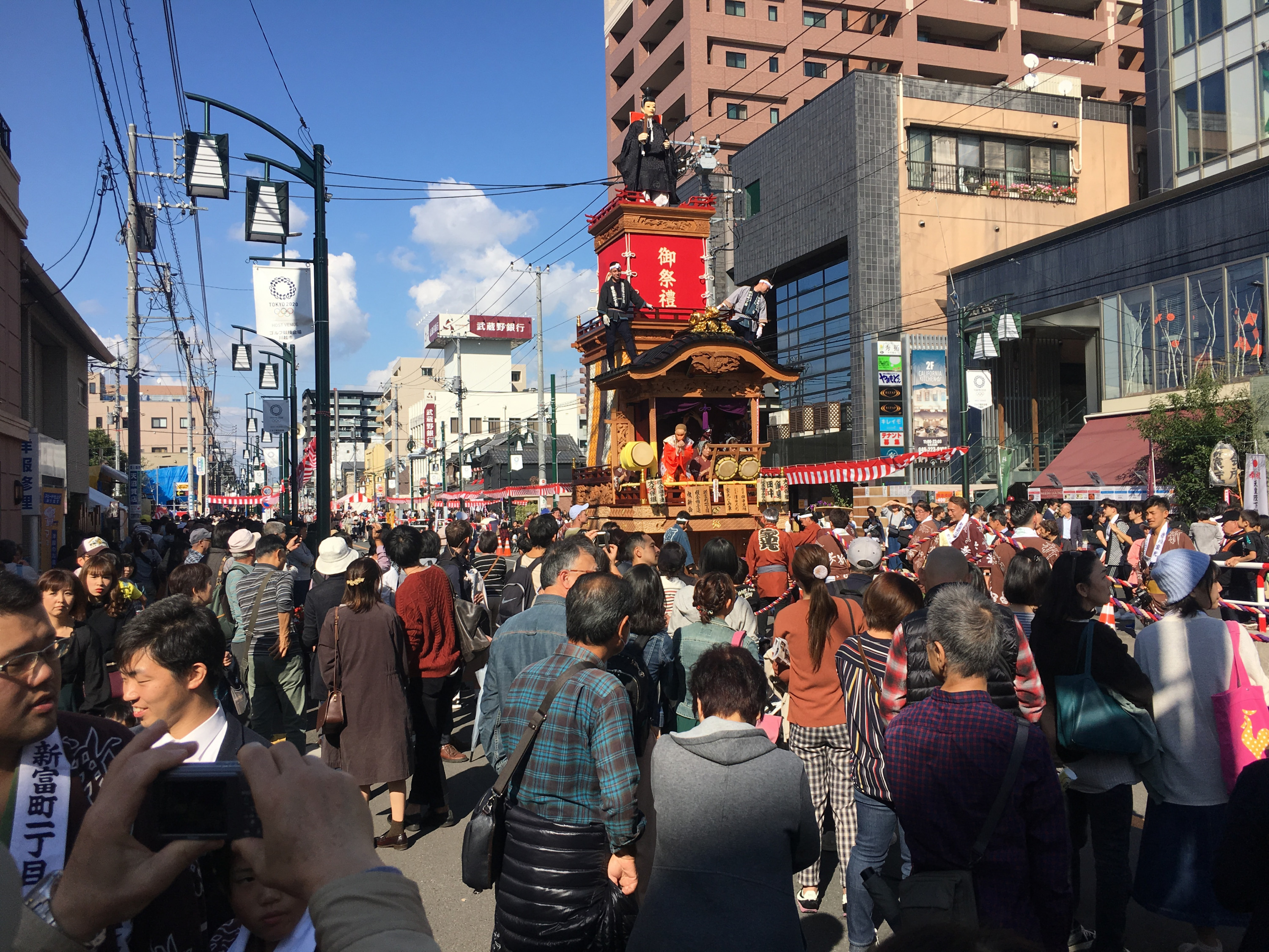 Festwagen des Stadtbezirkes Shintomi-cho 1-chome von Kawagoe . Oben auf dem Wagen steht Tokugawa Iemitsu.