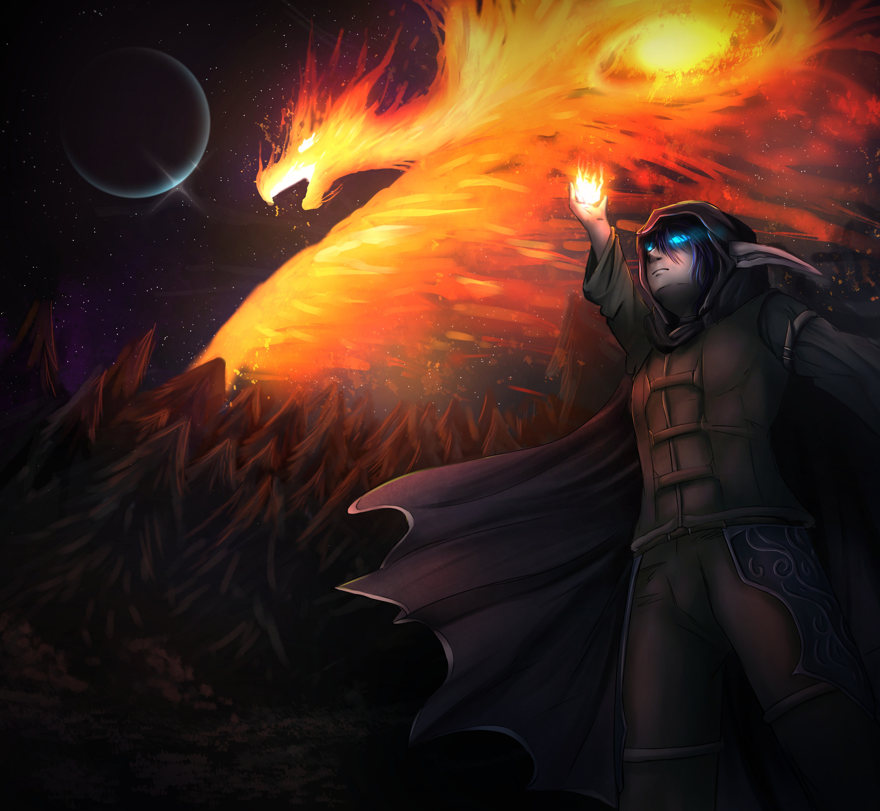 Cool das du wieder etwas hochgeladen hast. Das Bild sieht auch wirklich gut aus. Ich mag den Kontrast zwischen der Nächtlichen Umgebung und dem Phönix, und wie dadurch die Umgebung etwas beleuchtet wird.