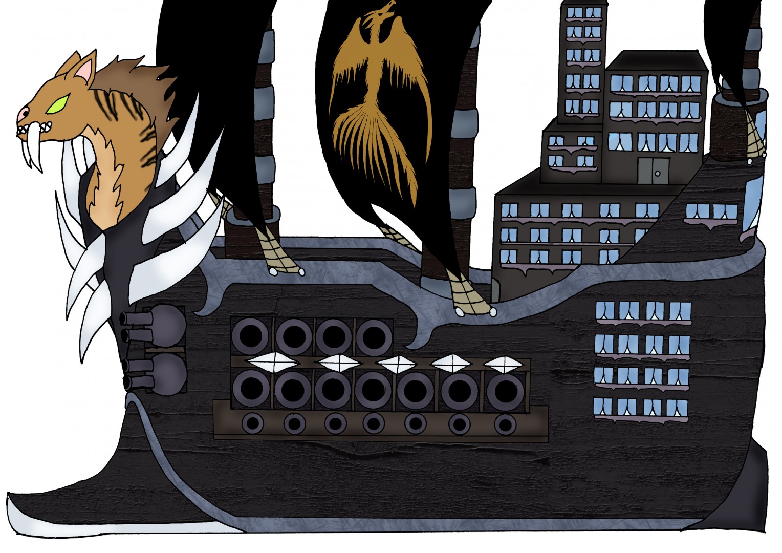 Galionsfigur: Säbelzahntiger mit Schwertartigen Klingen