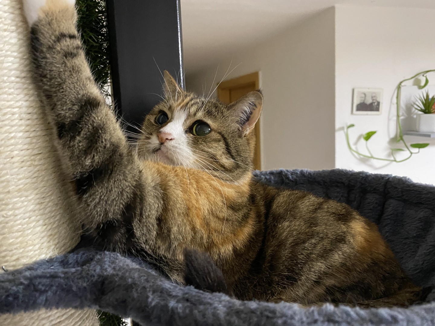 Meine Katze bei ihrem Lieblingsort auf dem Kratzbaum