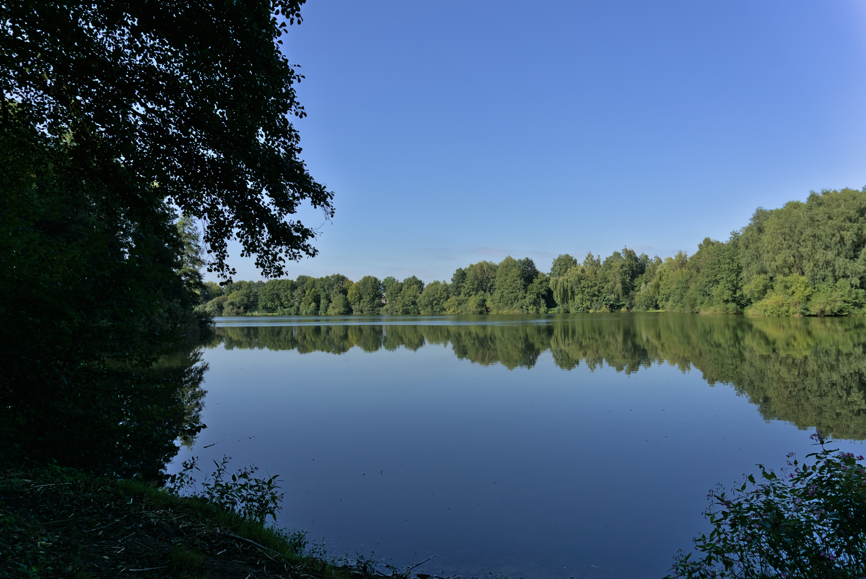 Gut, so gewaltig ist er mit einer Fläche von 8,4 ha nicht, aber er ist schon recht schön. Der See ist gar nicht so weit weg von mir, 2 Minuten mit dem Auto, 3-4 Minuten mit dem Rad und 10 Minuten wenn ich "wandern" gehe. Der See entstand in den 80ern und war mal ein Abbaugebiet für Sand. Schwimmen darf man darin nicht, er lädt aber durch ein paar Bänke zum verweilen ein. Außerdem führen Wege um den See und er wird gerne umwandert oder mit dem Rad umfahren - dauert nicht lange. Ab und zu sehe ich mal ein paar Angler...ob die da etwas herausfischen weiß ich aber nicht, bis auf Enten und Monstermücken habe ich da noch nicht viel Leben gesehen.