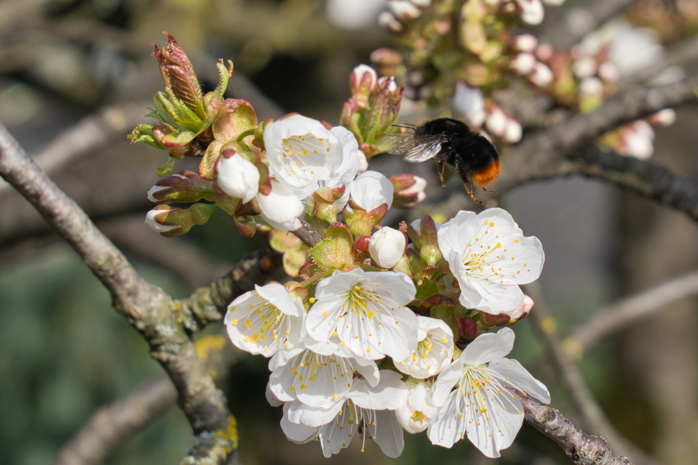 Als ich dieses Bild zum ersten Mal gesehen habe, mit der Hummel, die Beinchen so nach unten baumelnd, war mein erster Gedanke: Ich auch, kleine Hummel. Ich fühle mit dir!
