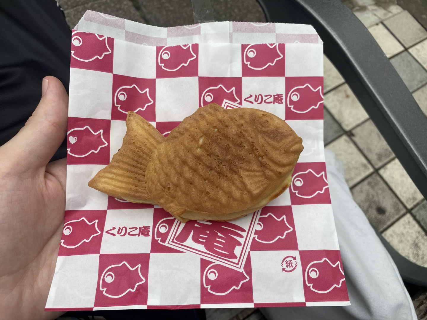 Ein Taiyaki mit Kastanien- und Rotebohnenpaste