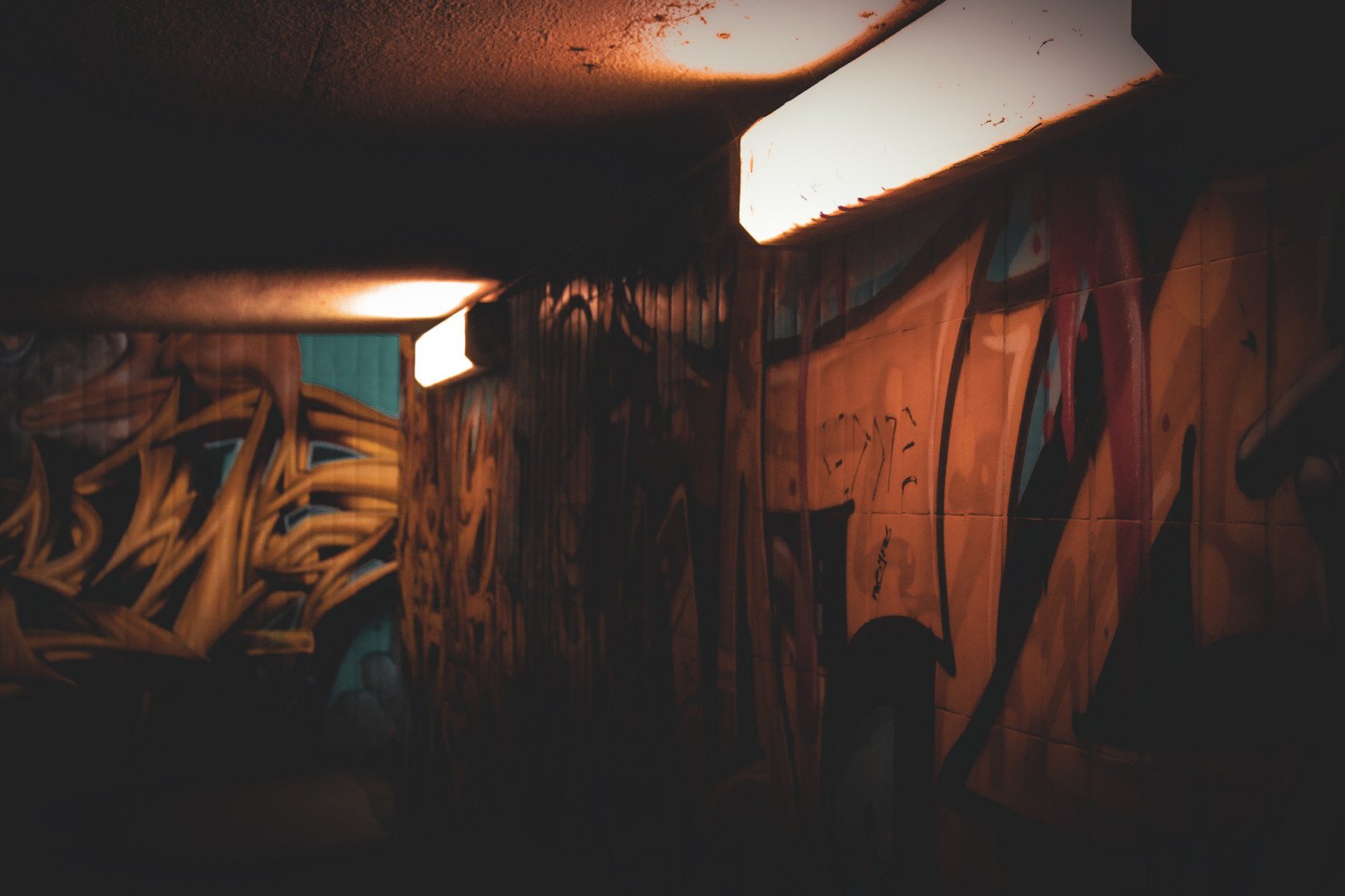Schatten flüstern an den Mauern entlang,