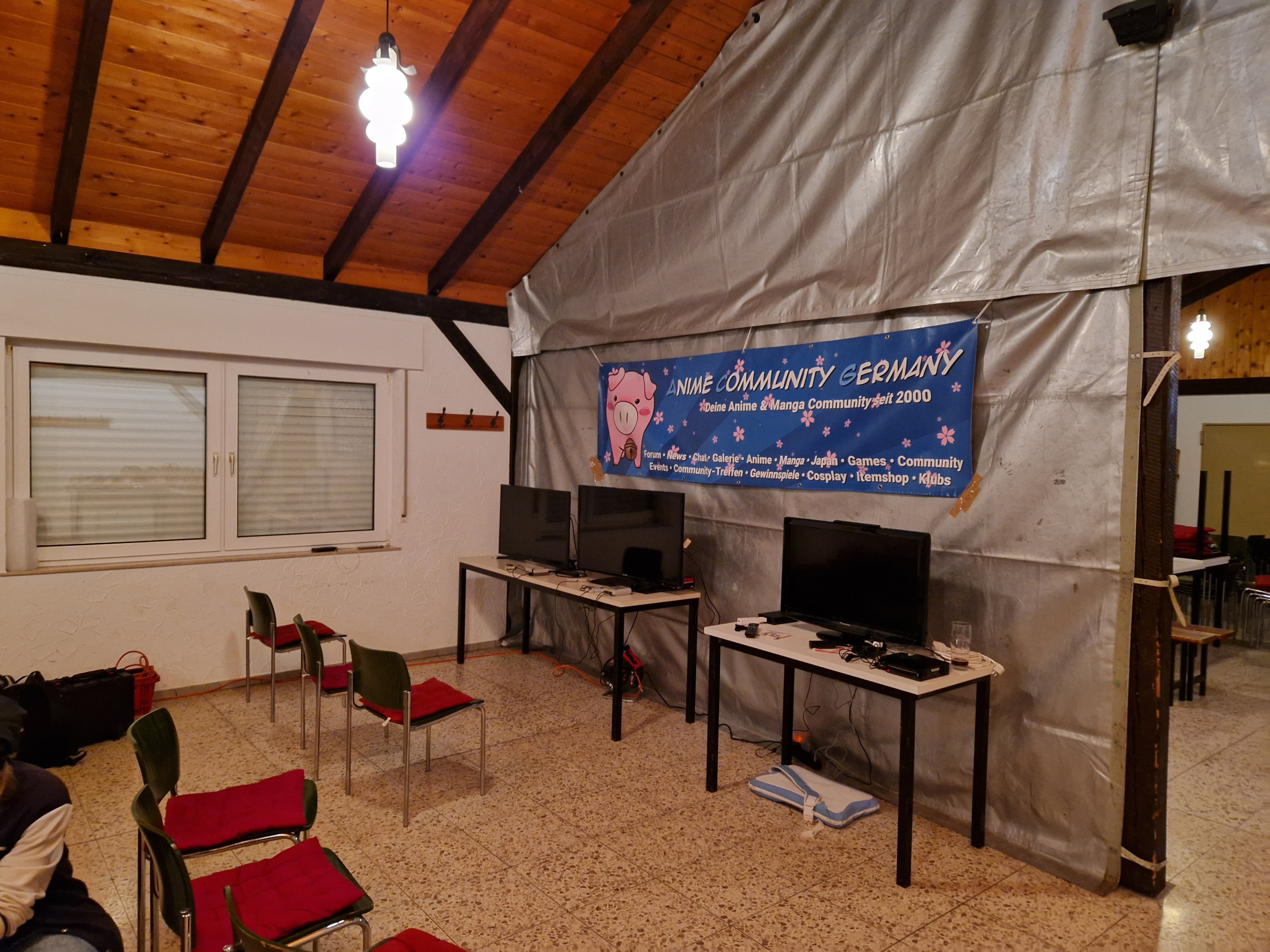Freitag Nacht | Die Halle ist vorbereitet, hier sehr ihr die geplante Gaming-Ecke mit einem NES Mini Classic, einem Super Nintendo Mini Classic und einer Nintendo Wii