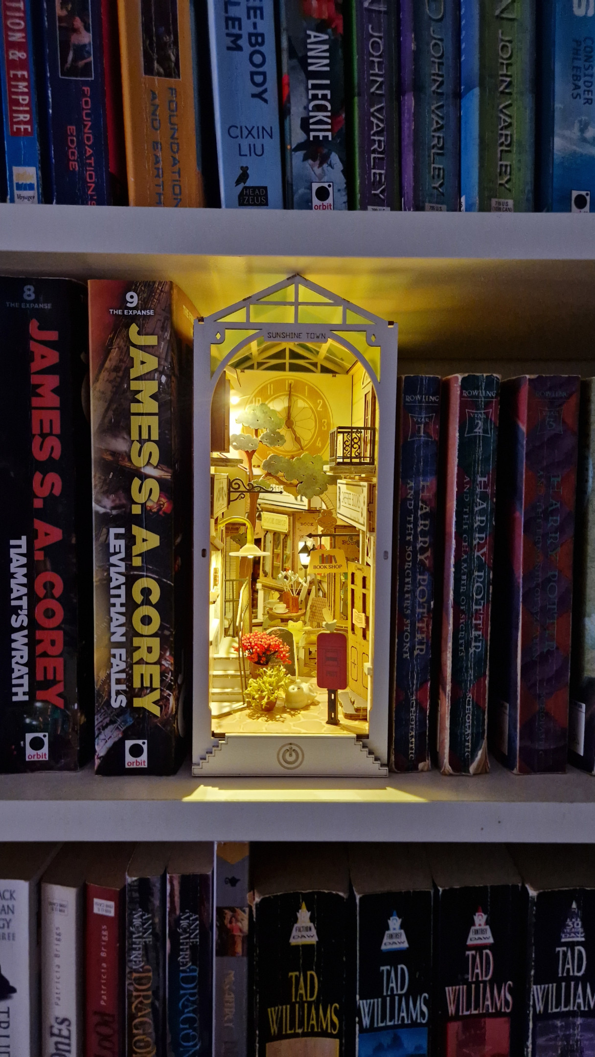 Ich liebe ja Puzzlekram, aber bei dem Ding war das Frustlevel schon ziemlich hoch. Einige Kanten mussten noch angemalt werden und ständig ist etwas abgebrochen. Trotz einigem Improvisieren ist es ganz schön geworden. Leider passt es von der Höhe gar nicht in mein Manga Regal, habe es daher in die Scifi/Fantasy Abteilung gestellt.