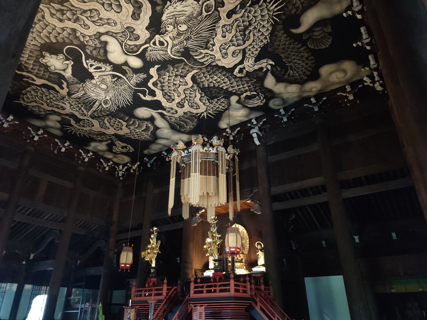 Am letzten Tag in Kyoto (und der Hälfte unserer Japanreise) haben wir noch ein paar Tempel abgegrast. Neben dem Kiyomizudera, welchen man sicher aus so manchen Animes kennt, wenn eine Schulklasse Kyoto besichtigen fährt, haben wir auch den Kennin-ji besucht. Der Besuch hat sich schon wegen dem Gemälde der Zwillingsdrachen an der Decke gelohnt. Leider gab es dort nur Goshuins auf Zetteln und keinen Eintrag ins Buch (es sind nur noch 9 Seiten frei^^).