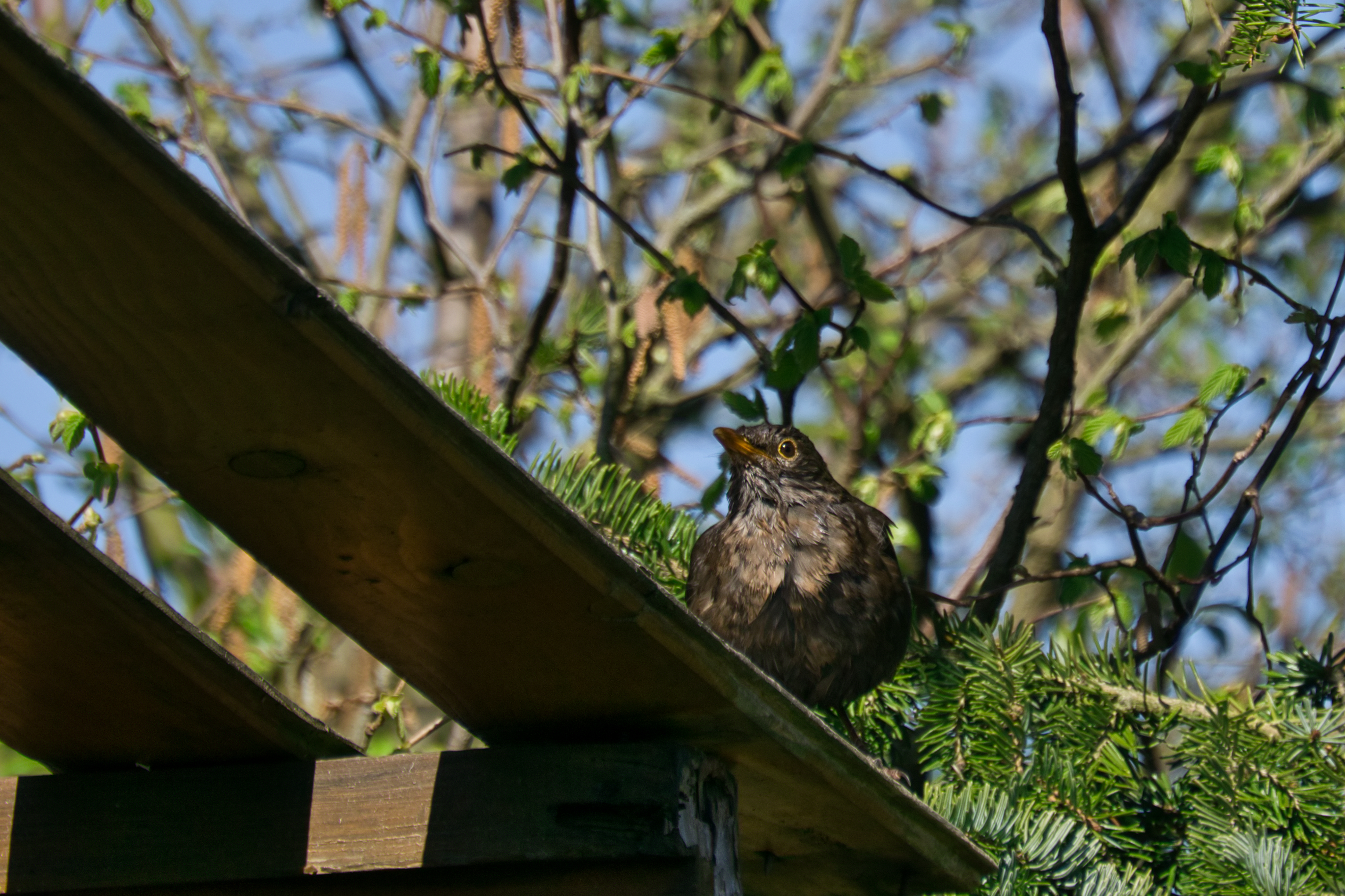 Ein kleiner Schnappschuss einer Amsel, nach einem kurzen Bad im heimischen Wasserschälchen.