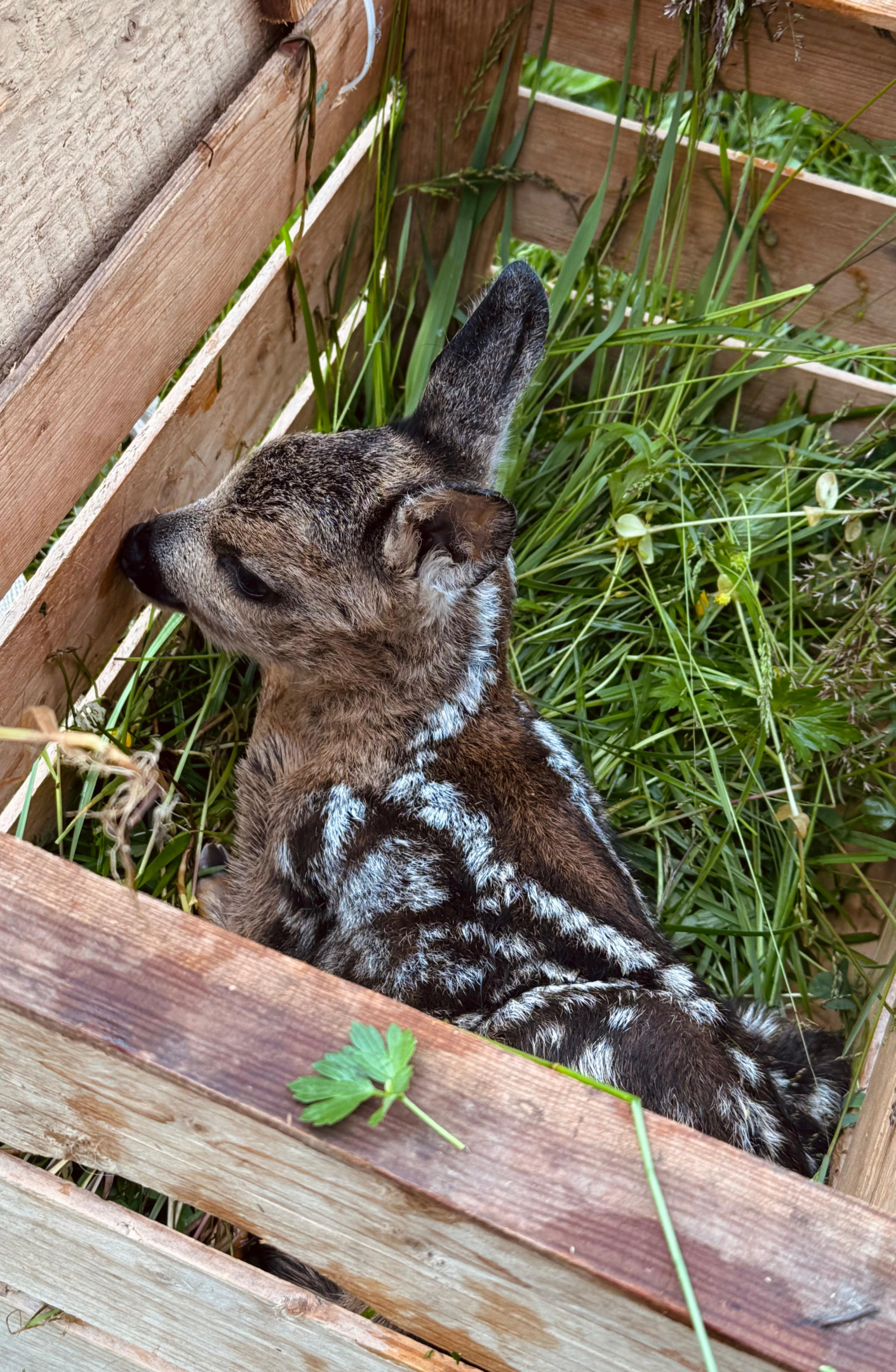 Leider ist das Kleine verwaist und befindet sich jetzt im der Wildtierstation, aber ich bin überzeugt dss es ihm dort gut gehen wird, da dort noch andere Kitze großgezogen werden. (':.