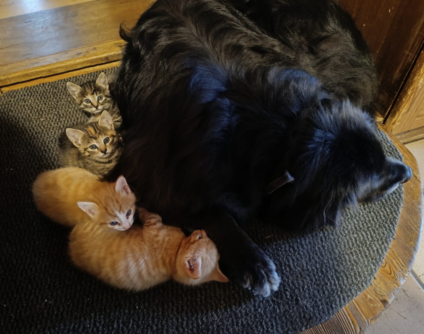 Die Haustiere einer Bekannten. So drollig wie die kleinen Mietzis sich an dem Hund ankuscheln und allgemein wie lieb sie miteinander umgehen :).