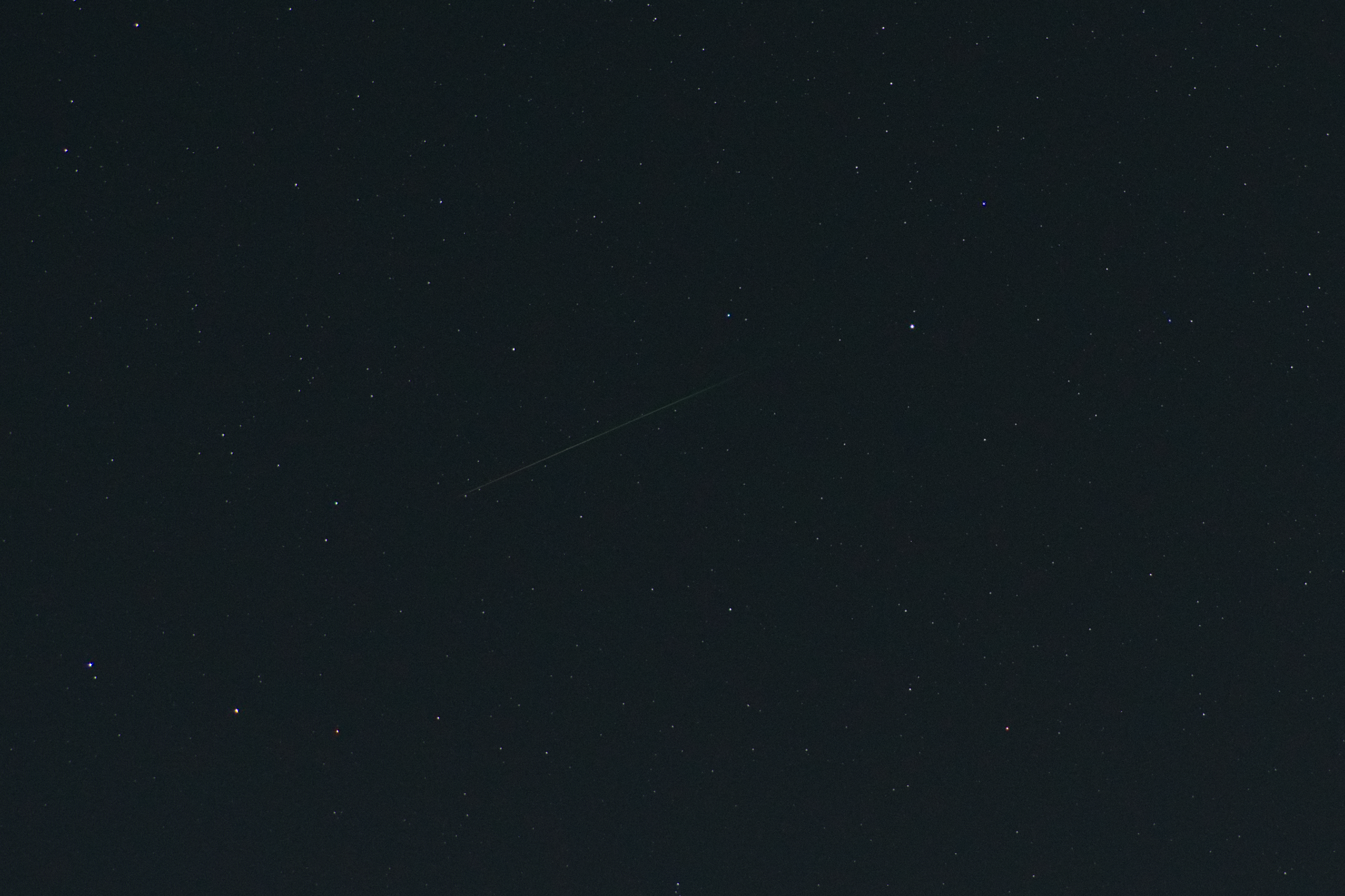 Die zweite Aufnahme. Der unscheinbarste Meteor der vier Aufnahmen. Visuell habe ich das Ding gar nicht gesehen, aber die Kamera hats aufgeschnappt.