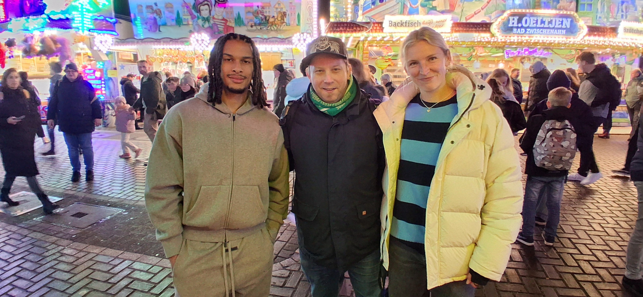 Isaac Schmidt, Kaylie Joy Ronan von Werder Bremen und John Caulfield auf dem Bremer Freimarkt 28.10.2025