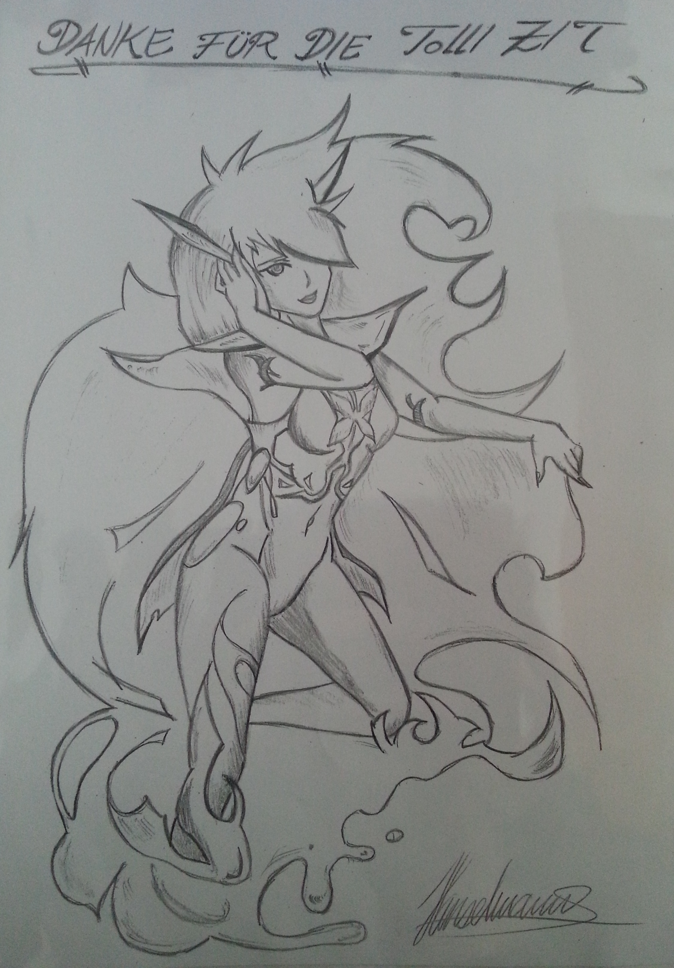 Diese BIld hab ich für meine Lehrerin in der Berufschule gezeichnet zum abschied ^^ Die Idee der Figur stammt aus dem Buch "Der Manga Maxizeichenkurs Girls" ( Feuergeist) ^^
