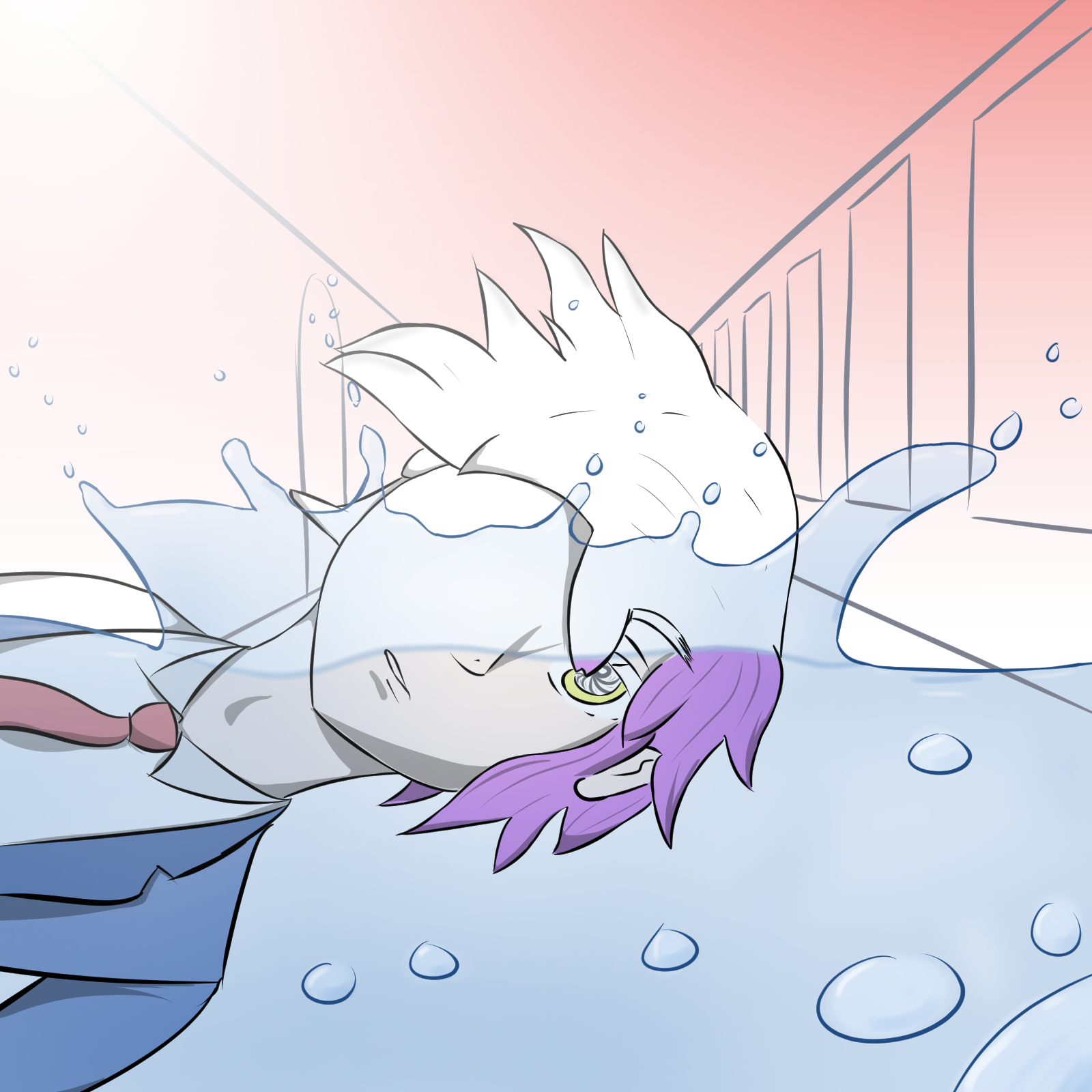 "Manchmal braucht man einfach einen Perspektivwechsel, um die Lösung eines Problems zu finden, das Große und Ganze zu sehen, oder die wahre Schönheit der Welt zu erkennen. Diese Perspektivwechsel geschehen nicht immer gewollt - so weiß man nicht, ob die Person im Bild nun ins Wasser gefallen, von jemandem gestoßen worden oder komplett bewusst reingesprungen ist. So weiß man auch nicht genau, ob das Wasser den Raum nun füllt, ob dieser Raum überhaupt ein Ende hat, oder ob das Wasser nur eine Illusion ist.