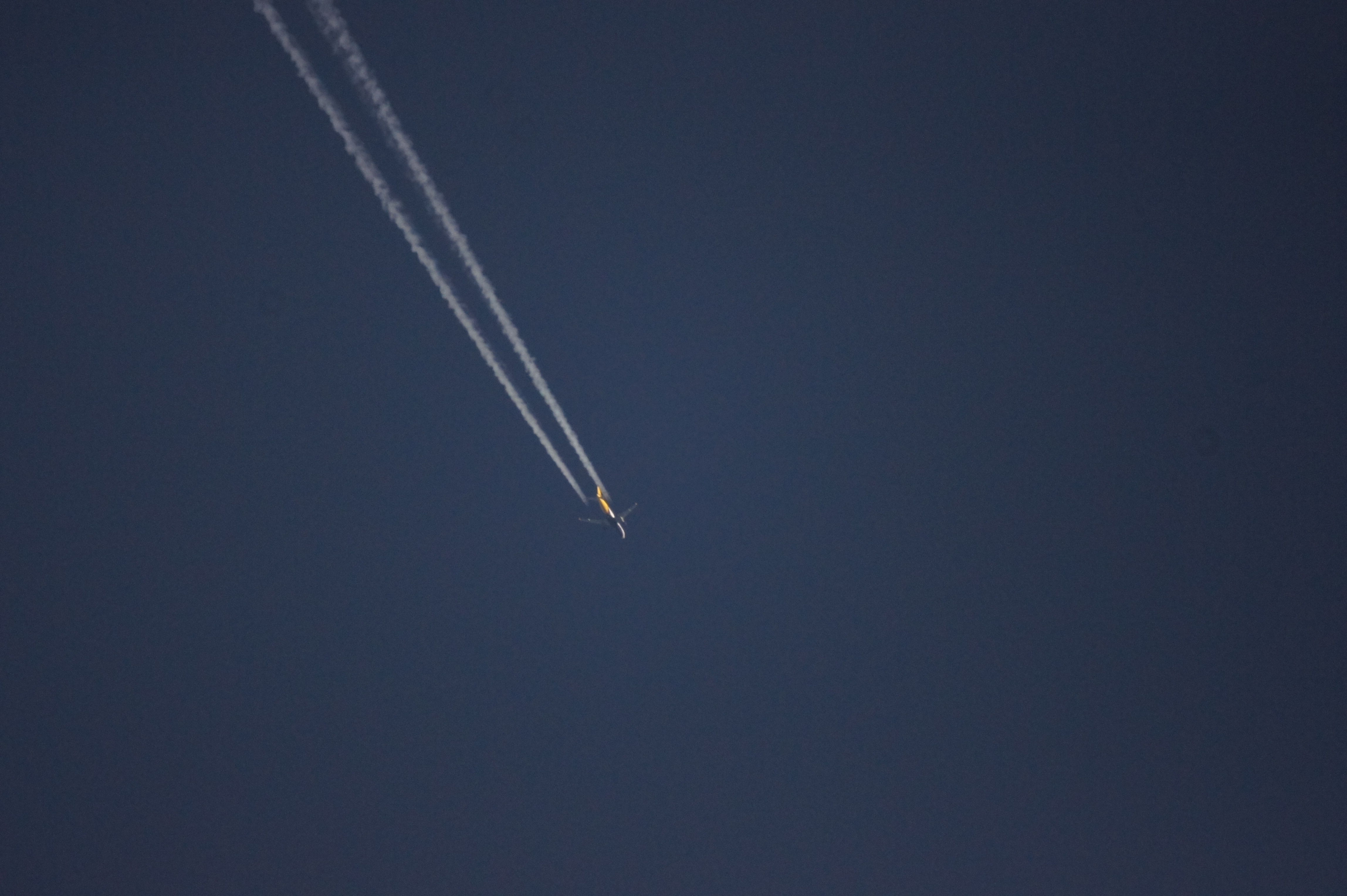 Die Kamera ist eine Sony Nex5 mit einem 500mm Spiegelobjektiv. Über die Höhe des Flugzeugs kann ich nichts sagen. Ich schätze irgendwo um die 8000m. War minimal niedriger unterwegs als die anderen.