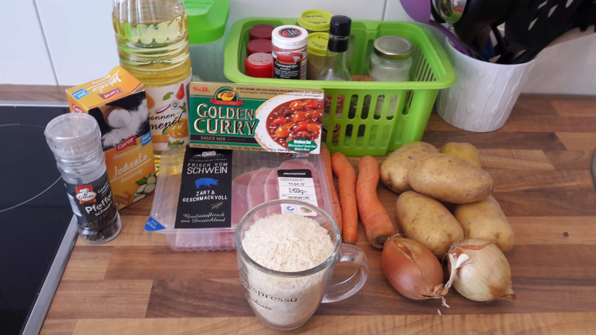 Das sind alle Zutaten die ich für mein japanisches Curry (einfache Art) verwendet habe.