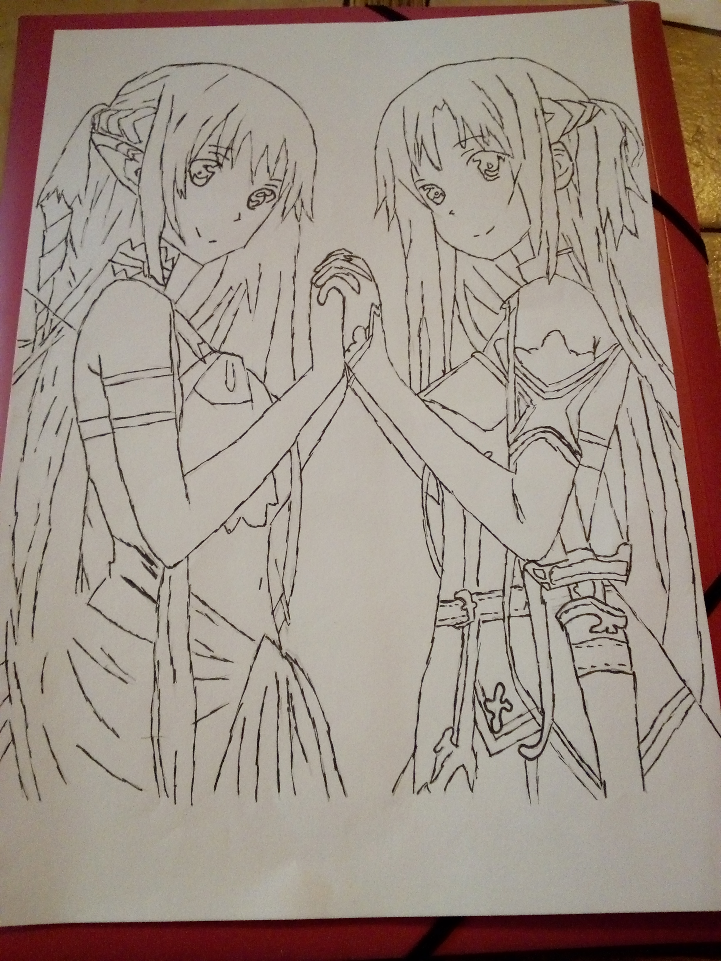 Das habe letztens gezeichnet und mit schwarzen Filzstift umrandet.